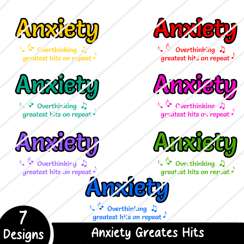 Embrace the raw and relatable with our “Anxiety: Overthinking Greatest Hit on Repeat” SVG/PNG image! This digital artwork is more than just a design; it’s a statement that resonates with many who navigate the intricate landscape of anxiety. The minimalist yet powerful typography captures the essence of overthinking, making it an ideal addition to your creative projects, whether it be for personal use or as a thoughtful gift for someone who understands the struggle.