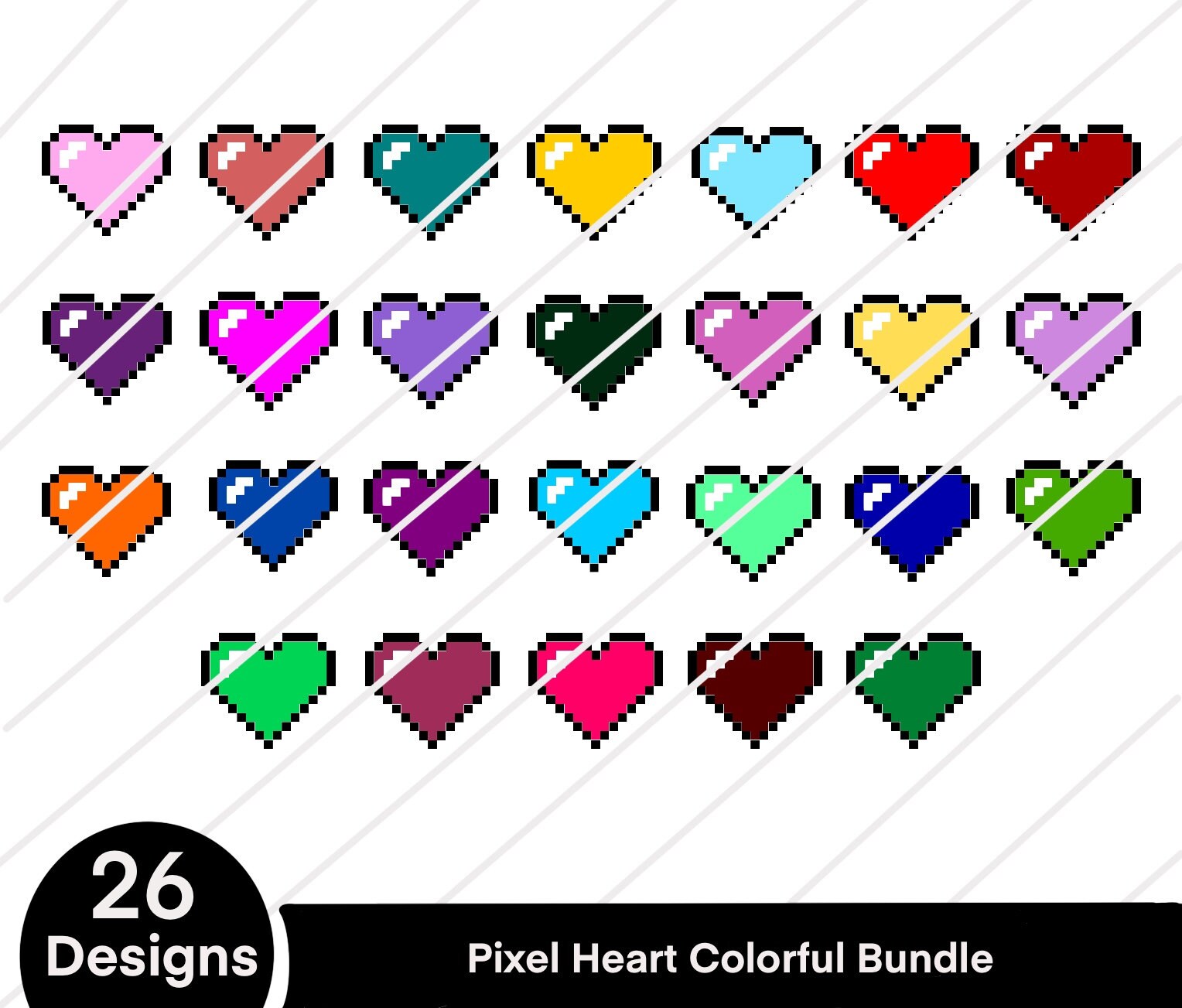 Pixel Hearts SVG Bundle: 26 Vibrant Colour Variations